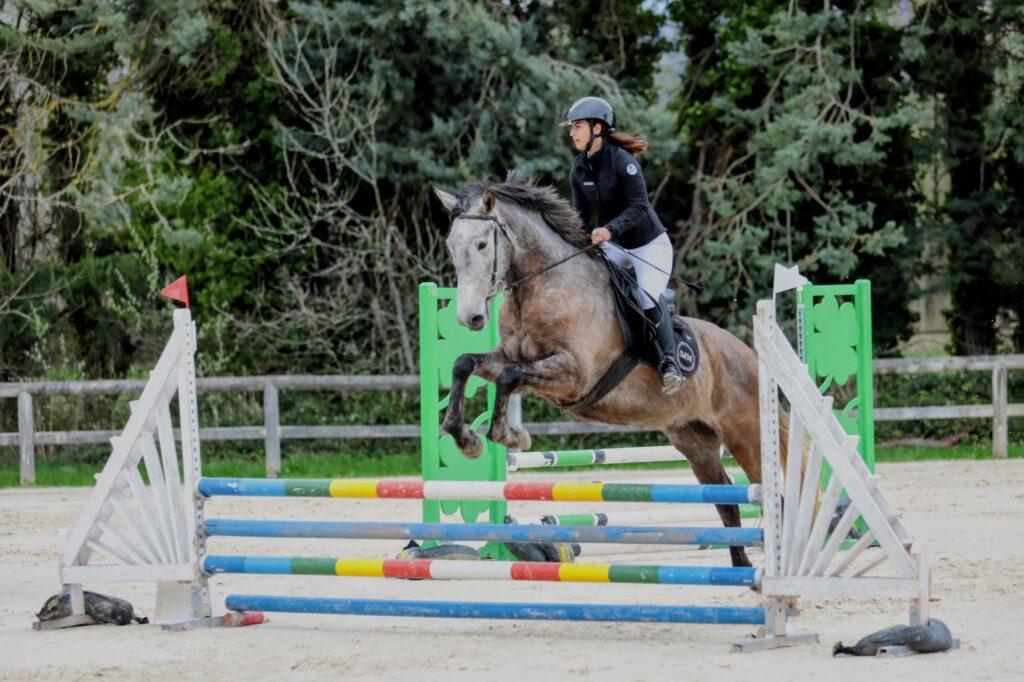 C’est une jument avec du tempérament, qui nécessite un cavalier de niveau Galop 4 minimum. Elle demande un cadre clair et des codes bien établis, mais une fois comprise, elle se révèle extrêmement intéressante dans le travail et très attachante au quotidien.