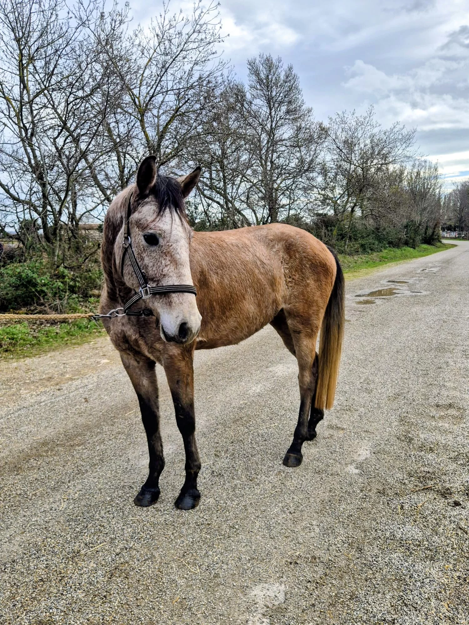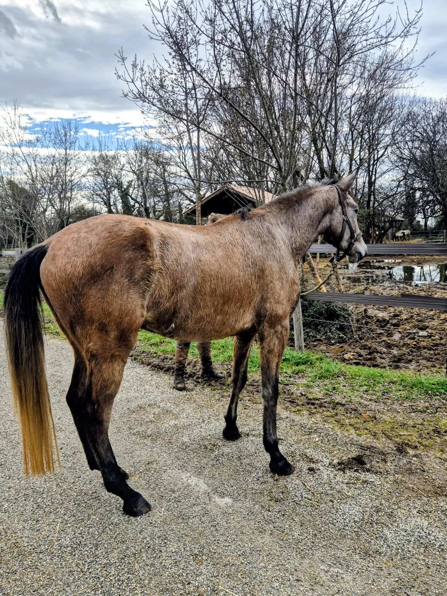 Dans la vie de tous les jours il est facile d’entretien, il est pied nu et il vit au paddock au foin à volonté en troupeau mais a déjà vécu un peu au box pour l’habituer.